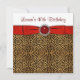 Convite de aniversário-leopardo elegante com fita vermelha bonito e joia. Este bonito convite de festas-leopardo é facilmente personalizado para o seu evento adicionando os seus detalhes no estilo de letra, cor e redação da sua escolha.