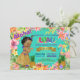 Convite de aniversário de Luau com adorável menina étnica africana-americana vestindo uma saia de grama bonitinha em um lindo fundo floral tropical com flamingo e abacaxi. Este convite de aniversário de luau para qualquer garota numerada é facilmente personalizado para seu evento simplesmente adicionando seus detalhes.