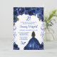 Este elegante e glamouroso convite de aniversário apresenta uma bela princesa com cabelo castanho e pele escura num vestido azul de marinho. O texto combina o script manuscrito e as fontes sans serif modernas para um aspecto elegante e sofisticado. Os arranjos florais, borboleta e confete criam a mistura perfeita de rústico e chic. Gráficos por www.etsy.com/uk/shop/SunflowerDayLove
