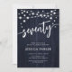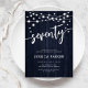 Convite de aniversário 70. Design russo com padrão de madeira de marinho. Cartão de convite clássico com luzes de fada e fonte branca de script. Perfeito para uma comemoração de na moda 70 dias. Personalize com seus próprios detalhes. Pode ser personalizado para qualquer idade! Impressos convites Zazzle ou modelo de impressão digital instantânea para download.