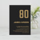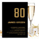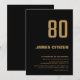 Um sofisticado convite de aniversário negro e 80 de ouro minimalista.