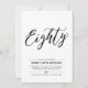Celebre seu dia especial com este simples convite de aniversário mínimo de 80. Este design apresenta um script de na moda com letra "Oitenta" com uma combinação de cores preto e branco. Mais convites para aniversários adultos e material de festa estão disponíveis no meu compro BaraBomDesign.