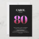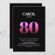 Convide seus amigos e entes queridos para a celebração de 80 com este convite de aniversário minimalista negro e rosa na moda.