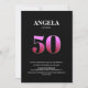 Convide seus amigos e entes queridos para a sua celebração de 50 anos com este na moda minimalista convite de aniversário preto e rosa.