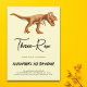 Simples e fofo convite para o terceiro aniversário com uma ilustração de um T-rex, perfeito para uma terceira festa de aniversário. Ilustrada e projetada por Patricia Alvarez.