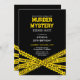 Convite de festas Mistério de Assassinato com um design moderno com fitas de cena de crime na linha da polícia amarela. Para a festa de aniversário perfeita da polícia, noite de jogo detetive ou um evento na sala de fuga do crime. Produtos personalizáveis para uma celebração memorável. Arte original de PUPSIKU STUDIO. Produtos exclusivos 100%.