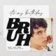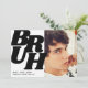 Uma maneira criativa de celebrar o aniversário de um adolescente é colocar uma foto do seu filho no convite, com uma frase como 'BRUH' em uma fonte moderna e em negrito. O verso do convite pode ter um modelo de texto simples em preto e branco com todos os detalhes sobre a festa. Essa combinação de uma frase divertida com uma foto do aniversariante permite que os convidados saibam imediatamente para quem é o convite, com um toque moderno que certamente causará impacto.
