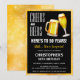 Um convite de aniversário surpresa 'Cheers & Beers' adequado para qualquer idade de marco. Apresentando duas pontas aquáticas de cervejas sobre fundo preto com uma borda amarela de efeito brilho e um modelo de aniversário moderno que é fácil de personalizar.