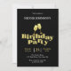 O convite de aniversário moderno apresenta champanhe dourado com texto de tipografia ousado "festa de aniversário" em fundo preto. Personalize os convites de festa de aniversário adicionando seu nome e detalhes da festa.