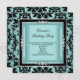 Convites Festa de aniversário Negra Azul Elegante Damasco d