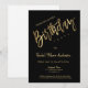 Crie um Convite de aniversário personalizado e esplêndido, chique e minimalista para seu especial! Este convite apresenta um roteiro de caligrafia espaçoso e bonito, escrevendo em caracteres falsos de folha de ouro e com fundo preto de quadro negro. Você pode personalizá-lo facilmente com seu próprio texto e personalizá-lo de acordo com o seu gosto. Por favor, observe que o trabalho de arte gráfico "Aniversário" não pode ser editado. Nota complementar: O impressão de folha de ouro é um falso efeito de folha de ouro. Não é a folha de ouro a quente.