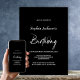Convide seus amigos e entes queridos com este convite de aniversário negro moderno. A área de texto personalizável neste modelo de convite permite que você inclua facilmente todos os detalhes necessários para sua celebração especial de aniversário, incluindo as informações de data, hora, local e RSVP. Uma variedade de tipos de papel e estilos de canto estão disponíveis para seus convites exclusivos, juntamente com a opção de download se você preferir um formato digital.