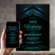 Elevem a celebração do marco do seu convidado de honra com este convite de aniversário negro e teal chic, adequado para qualquer comemoração de aniversário. Estipulosamente moderno e elegante, dá o tom perfeito para uma noite inesquecível. Personalizar os convites é uma brisa, basta preencher os detalhes essenciais usando os modelos de texto fornecidos. Você pode escolher entre vários tipos de papel e estilos de canto para criar convites exclusivos que se adequem ao seu gosto. Além disso, você também tem a opção de baixar o convite se preferir uma versão digital.