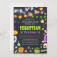 NEON HALLOWEEN - Este convite para o Aniversário do Neon Halloween assustador mostra uma variedade de guloseimas de halloween e outros trabalho de arte de halloween assustadores incluindo fantasmas, globos oculares, crânios e um gato preto! Se você está procurando um convite assustador para o Dia das Bruxas, temos certeza que nossa coleção de Halloween será um grande sucesso! Este Convite de Aniversário do Dia das Bruxas é facilmente personalizável para outros anos, e inclui também um céu roxo estrelado. Use este convite de Halloween para qualquer ano de aniversário! Primeiro aniversário, segundo aniversário, terceiro aniversário, etc. Ao usar o software Zazzle fácil de usar (sem download necessário) no seu navegador, você simplesmente compra e personaliza tudo no mesmo lugar. É tão fácil assim!