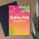 Este convite inspira-se nos Sinais Neon com Cor Rosa e Amarelo como cor de sotaque para dar diversão e vibrações de verão