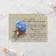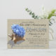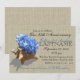 Elegante hortênsia azul em uma concha com o toque rústico de um fundo com aparência de aniagem para uma festa de aniversário com tema de praia ou qualquer ocasião.