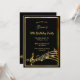 Um cartão de convite de aniversário moderno e moderno para homens e mulheres. Um fundo preto clássico, com falso quadro dourado e notas musicais, letras ouros coloridas. Modelos para informações sobre a sua parte. Anterior: as notas de música douradas a preto falham. Dica: Se você não quiser que pareça um cartão postal, clique em personalizar, vá para o verso e remova o divisor e o carimbo de posto.
