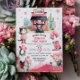 Celebre o grande marco de sua vaquinha com este Convite de aniversário Ocidental Rosa Primeiro Rodeio! Projetado com detalhes charmosos como botas, chapéus, lassos e um doce tema rosa ocidental, este convite dá o tom para um dia cheio de diversão no rancho. Perfeito para uma primeira comemoração de aniversário, ele reúne vibrações rústicas ocidentais e encanto feminino lúgubre para tornar inesquecível a sua pequena festa.