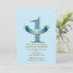 Convites de Festa de Aniversário ONE 1º 1 com Bolinhas Azuis e Faixa.