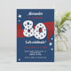 🎂 se juntar a nós para celebrar um 80 patriótico! 🎈 Honrar um veterano ou militar com este convite de aniversário vermelho, branco e de temas azuis. A design de captura de olhos exibe uma faixa vermelha de fita colocada sobre um fundo azul profundo, realçada por um número retrorativo branco em negrito com 80 acentos com recortes de estrelas. Este convite personalizado é perfeito para uma comemoração de aniversário de um marco cheio de orgulho patriótico. Faça seu amado se sentir especial com este convite para o partido americano! 🇺 🇸
