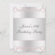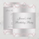 Convite de festa de aniversário de menina cor-de-rosa e prata elegante com pérolas rosa para qualquer idade.