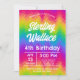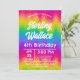 Faça uma declaração ousada com este convite de festa de aniversário vibrante com chevron de arco-íris! O padrão de zigue-zague impressionante em uma gama de cores cria um cenário enérgico e divertido para qualquer celebração de aniversário. Personalize com o nome da criança, idade e detalhes da festa para um evento inesquecível.