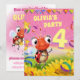 A Festa de aniversário personalizada convida a garota de 4 anos... uma fotografia encantadora de uma pequena Ladybug convidando amigos para a festa de aniversário de seu filho de 4 anos. É tão fácil mudar o nome no de e depois os detalhes da parte no contrário. Cada idade foi preparada para ser super rápida a personalizar. Procure os cartões, crachás de botões e software de festas correspondentes no intervalo 'Lil Ladybug' do sapo Quente.