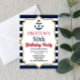 Este é um convite de aniversário temático náutico. marinho de aniversário azul âncora vermelha relâmpago ouro barco roda oceano mar