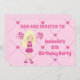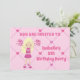 Este adorável convite de aniversário cor-de-rosa apresenta uma cheerleader loura bonito em um uniforme alegre segurando pom rosa. Personalize esta festa de crianças bonitinhas com o nome do seu filho em rosa adorável e escreva os seus detalhes na parte de trás desta carta.