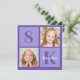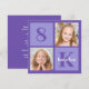 convite de festas de aniversário de criança quadrado de 2 fotos em púrpura bonito para uma garotinha ou criança. Comemore seu filho com fotos bonitinhas deles no convite para comemoração. Adicione o nome e a idade e os detalhes da parte traseira.