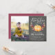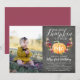 Apaixone-se por esses adoráveis convites de aniversário infantil rústicos com uma foto favorita no lado esquerdo. O design apresenta uma abóbora em aquarela laranja adornada com flores burgundy, rosa e laranja e folhagens verdes em um fundo de quadro-negro. "Nossa pequena abóbora está fazendo" aparece na parte superior em letras de caligrafia sofisticada, com a idade do seu filho inscrita na abóbora. A amostra mostrada é para um primeiro aniversário. Personalize com os detalhes da sua festa de aniversário abaixo em letras brancas.