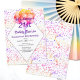 Adicione um toque de elegância a um "50 e Fabuloso" email de celebração de festa de aniversário aos convidados com este confete colorido arco-íris e design de pacote de balão. Personalize o texto, remova o texto ou edite usando a ferramenta design para selecionar um estilo de fonte, tamanho e cor preferidos.
