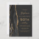 A borda esquerda deste elegante convite de aniversário moderno apresenta uma coloração aquosa preta e borda agitada com brilho dourado. O texto personalizável combina manuscrito dourado, fontes em copperplate e itálico em um fundo preto de slate. O verso apresenta um design de agate preto e dourado correspondente.