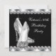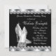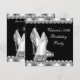 Convite de festa de aniversário preto elegante com brilho e sapatos de salto alto e diamantes para mulheres. Este convite de festa de aniversário de 40 anos preto e branco é facilmente personalizado para o seu evento adicionando detalhes do evento, estilo de fonte, tamanho e cor da fonte e texto.
