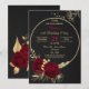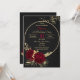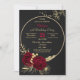 flores românticas elegantes e folhas de ouro em círculo dourado, convite de aniversário preto de luxo Os detalhes de brilho são simulados