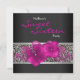 Convite de aniversário de Sweet Sixteen com onça rosa quente preta. Este convite de festa rosa quente é facilmente personalizado para a sua festa ou evento, simplesmente escolhendo o botão laranja "Personalize!" para começar a adicionar os detalhes do seu evento, estilo de fonte, tamanho e cor da fonte e texto. Por favor, note que - todos os enfeites de bolo, adesivos, cartões e desenhos de convites que você encontrará no Zazzle são gráficos impressos sem joias, laços, partes ou peças reais em relevo ou adicionadas.