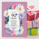 Convide seus amigos e entes queridos para o seu aniversário de 90 com este convite de aniversário floral primavera que apresenta uma borda cor-de-rosa com petunias lavandas e rosa e margaridas brancas.