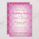 Convite de aniversário cor-de-rosa moderno, elegante e divertido, com cor-de-rosa quente e ouro.Você pode personalizar o texto facilmente para qualquer ocasião, se quiser. Design por Amelia Carrie para zazzle.com/GlitterInvitations