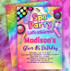 Vamos glitz & glam com arco-íris colore maquiagem de meninas e convite de barramento de festas do spa do unhas
