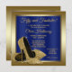 Elegante azul real e calçado de salto alto brilhando ouro convite de aniversário. Estes belos convites de festas azuis e azuis de alto salto são facilmente personalizados para o seu evento simplesmente adicionando os detalhes do seu evento, estilo de fonte, tamanho de fonte e cor e texto da sua escolha.