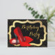 Belos calçados vermelhos brilhantes de salto alto, convite de aniversário brilhante preto e dourado. Este elegante convite de aniversário vermelho, preto e dourado é facilmente personalizado para o seu evento.