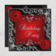 Festa de aniversário Red Black Silver Floral Silver Metal Party Girl. O aniversário do Elegant Classy All Occasion Party convida a Modelo