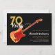 70 convites de festas de aniversários de 70 de rochas com um legal violão elétrico com padrão de chama Fire e artilharia de guarda vermelha e ilustração musical com tipografia personalizada de caligrafia moderna em preto e ouro. Essa modelo fácil de usar cria o convite personalizado perfeito para celebrar setenta no estilo rock n roll e é ideal para um guitarrista, músico e amante da música. Qualquer guitarrista lhe dirá que você nunca pode ter muitas guitarras. Este legal instrumento musical moderno design celebra a energia musical deste maravilhoso instrumento musical e é a maneira perfeita de celebrar o 70º aniversário. Arte original da artista Catherine Sweetman