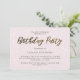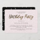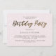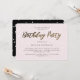 Convite de aniversário moderno cor-de-rosa pincelado com bonito tipografia e pontos confetti divertidos.