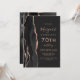 A borda esquerda deste elegante convite de aniversário moderno apresenta uma coloração aquosa preta e borda agitada com falso brilho rosa. O texto personalizável combina a letra rosa-rosa, a letra copperplate e a letra itálico num fundo preto de ardósia. O verso apresenta um design de agate preto e rosa dourado correspondente.