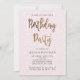 Convite de aniversário moderno com falsa tipografia de ouro e confete bonito.