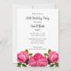 Este convite de festa de aniversário apresenta um lindo design de rosa cor-de-rosa em um fundo branco. Personalize o texto com suas informações. Use este modelo de convite para uma variedade de ocasiões.