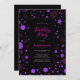 Um convite de aniversário preto com uma borda de confete de falso brilho roxo e cor-de-rosa roxa para uma sutil preferencialmente de shimmer do que um grande brilho criando um estilo mais glamouroso para o convite.