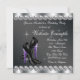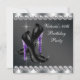 Calçados de salto alto, leopardo roxo e negro elegante e convite para festas de aniversário de mulheres. Este belo convite de aniversário preto e roxo de qualquer número é facilmente personalizado para o seu evento adicionando detalhes do evento, estilo de fonte, tamanho de fonte e cor e texto.
