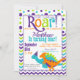 Uma fabulosa bolinhas colorida e convite ZigZag para a sua festa de aniversário de estômago, chomp e dinossauros ruidosos. Bright roxo, teal, verde e laranja fazem disto um design de prato de dino. Perfeito para todas as idades. Estão disponíveis suprimentos de partes correspondentes.